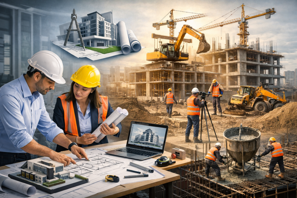Contamos con amplia experiencia en construcción y ejecución de obras, abarcando desde proyectos residenciales hasta comerciales e industriales.